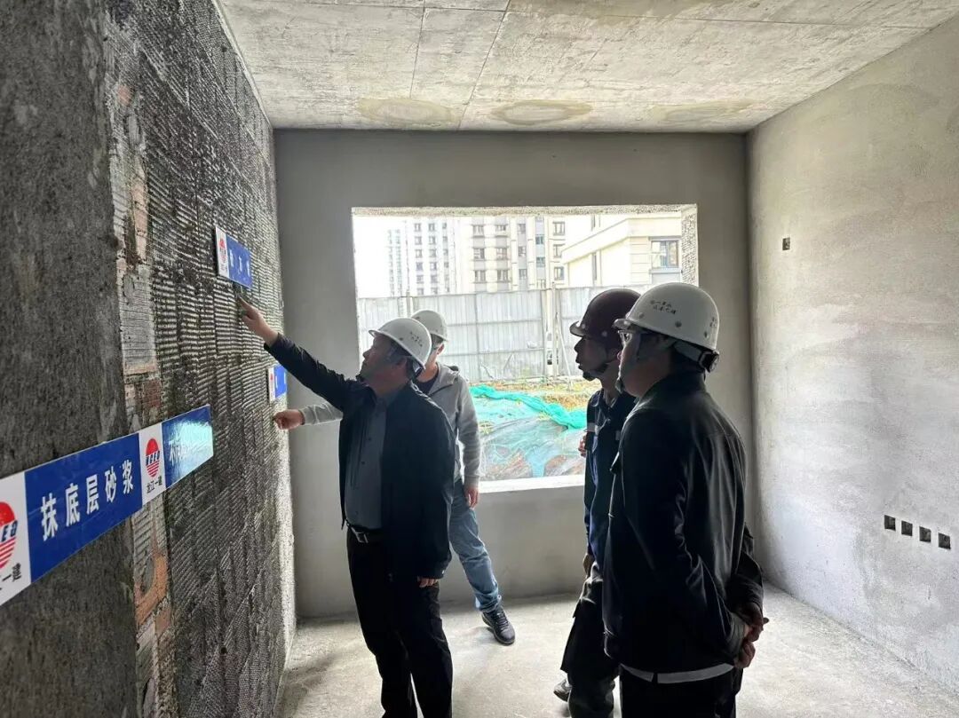 在視察砌筑及抹灰工程時(shí),林寶臣對(duì)細(xì)部節(jié)點(diǎn)做法進(jìn)行專(zhuān)業(yè)指導(dǎo)。他指出,要樹(shù)立行業(yè)標(biāo)桿意識(shí),通過(guò)技術(shù)創(chuàng)新與管理升級(jí)雙輪驅(qū)動(dòng),將每個(gè)構(gòu)造節(jié)點(diǎn)打造為可觀摩、可推廣的工藝樣板。要求工程團(tuán)隊(duì)深植精益建造理念,以毫米級(jí)精度標(biāo)準(zhǔn)夯實(shí)建筑筋骨,在墻體垂直度、平整度等關(guān)鍵指標(biāo)上形成可視化驗(yàn)收體系,為后續(xù)工序提供優(yōu)質(zhì)基面,彰顯國(guó)企建造的品質(zhì)擔(dān)當(dāng)。